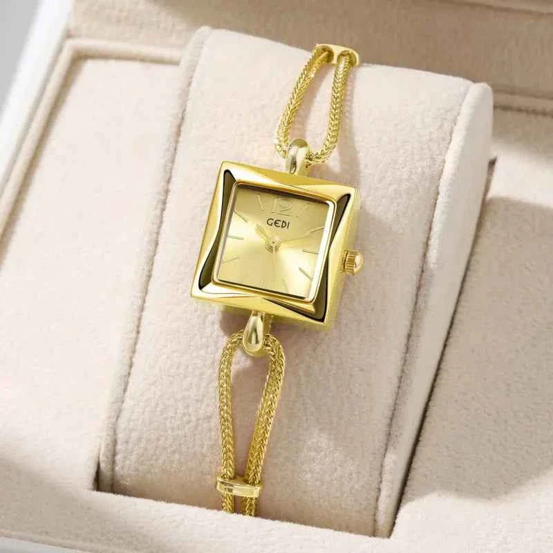 Women's Gold Square Geometric Mirror Watch with Quartz Movement