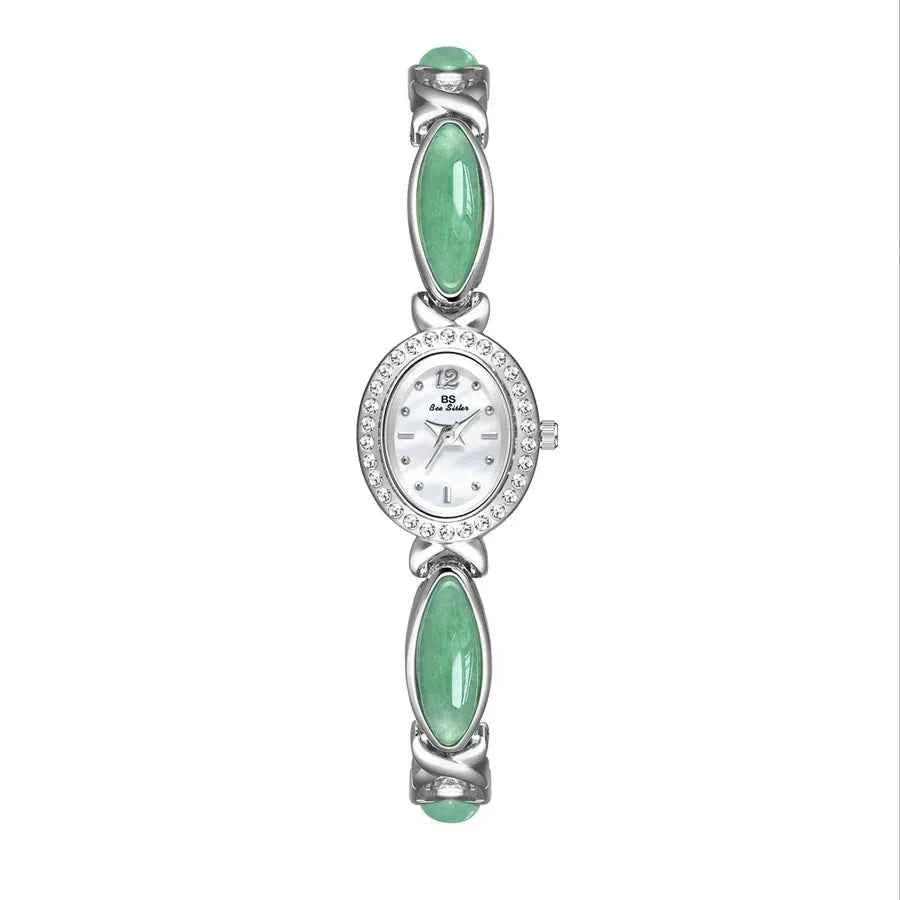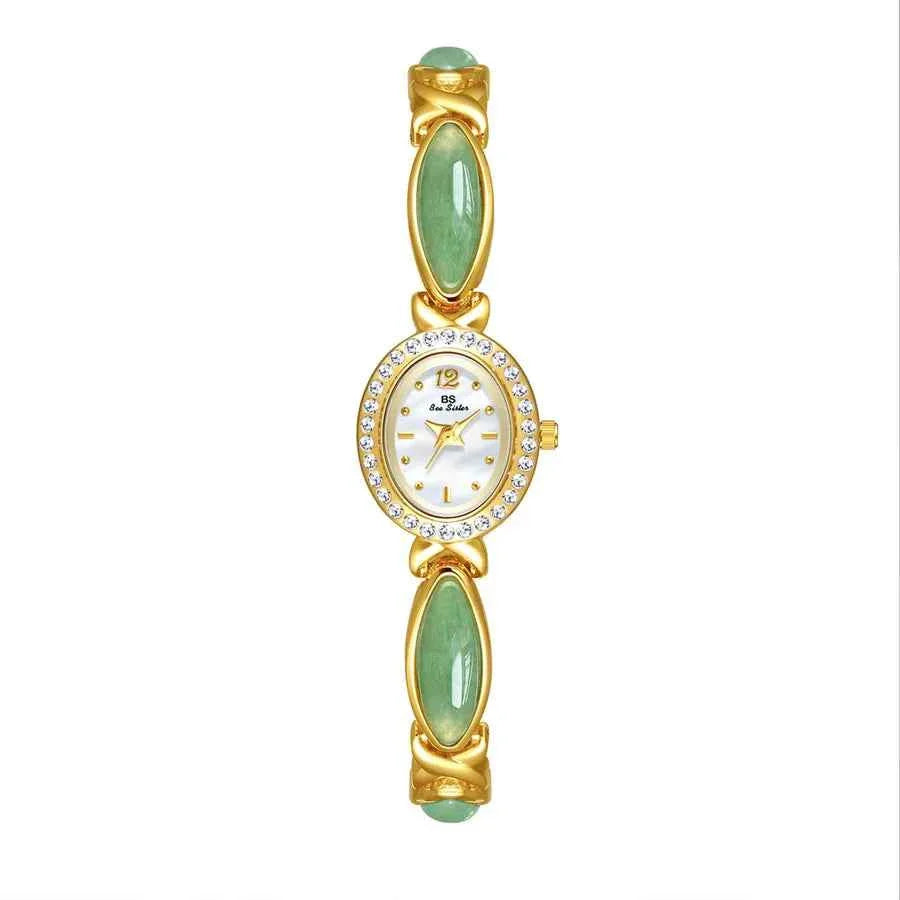 Elegant Classical Women's Quartz Watch with Jade and Tempered Glass
