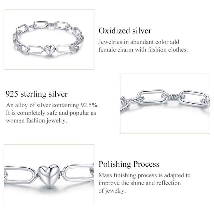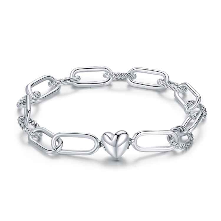 S925 Sterling Silver Paperclip Love Women Bracelet Jewelry